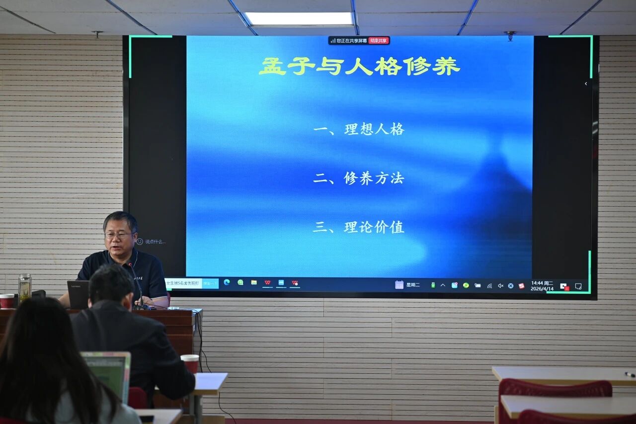 讲座最后,徐庆文教授作总结发言。他指出,从尧舜禹到孔子、孟子,儒家圣人人格的塑造一脉相承,而孟子的贡献在于将圣人人格从理想拉入现实,为普通人指明了修养的方向与路径。正如孟子所言“君子之志于道也,不成章不达”,立志于道,更需要以笃行去攀登。他鼓励同学们在日常学习生活中践行孟子“坚韧”的精神品格,面对成长中的挑战不动摇、不懈怠,以“奋楫图强”的担当回应时代的召唤。