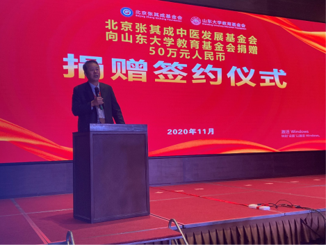 11月28日上午,北京张其成中医发展基金会向山东大学教育基金会捐赠50万元人民币签约仪式举行。山东大学合作发展部部长、山东大学教育基金会秘书长王飞,北京张其成中医发展基金会理事长张其成,分别作为双方代表在捐赠合约上签字。本次捐赠的50万元,主要用于山东大学尼山学堂教学与科研,助力学生发展和人才培养。河南省委常委、河南省军区政委王伟力,山东大学儒学高等研究院、山东大学中华美德教育学院党委书记李平生,山东大学校友企业家俱乐部理事长、山东山大华天科技股份有限公司董事长李宇兵等领导与嘉宾,出席了本次签约仪式。