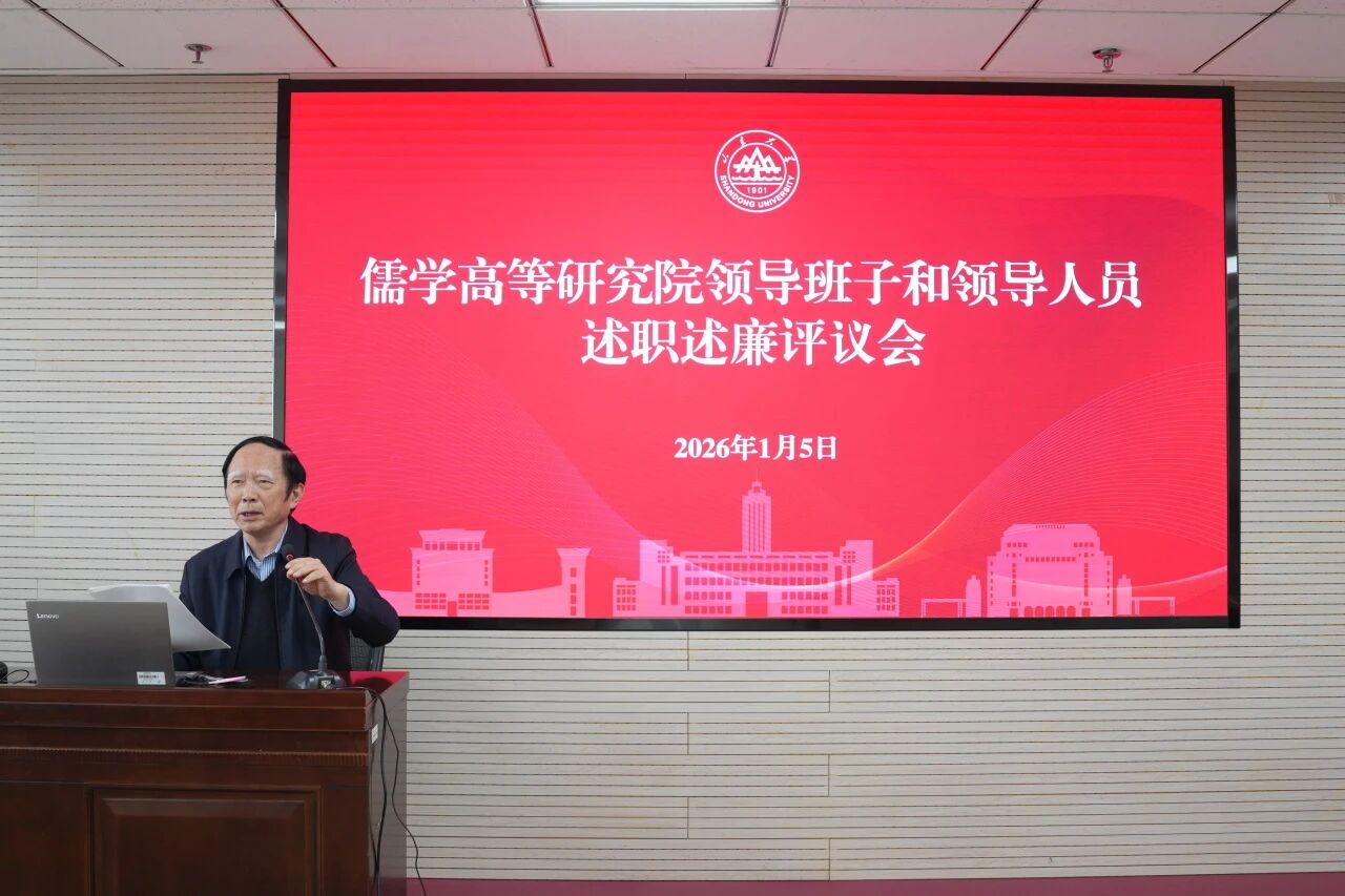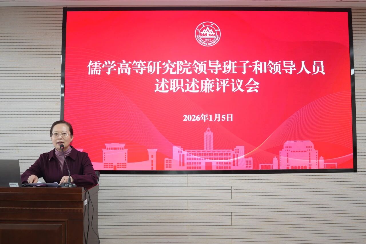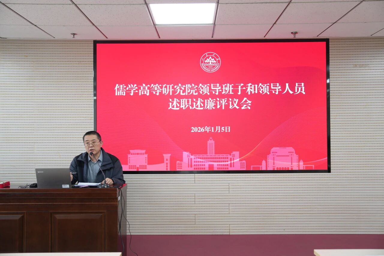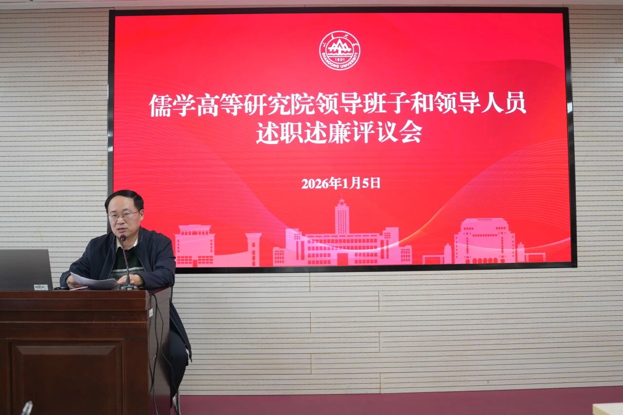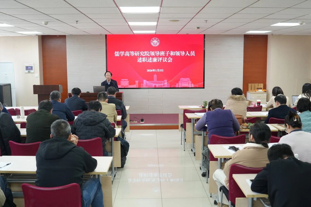 2026年1月5日下午,儒学高等研究院在知新楼A2116召开2025年度领导班子和领导人员述职述廉评议会暨全院教职工大会。院长王学典、院领导班子成员及全体教职工参加了会议。会议由儒学院党委书记、执行院长王加华主持。