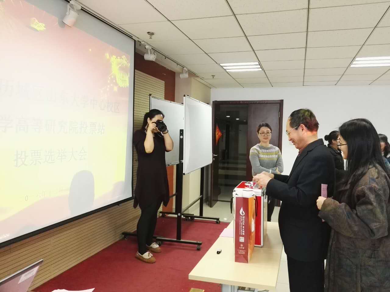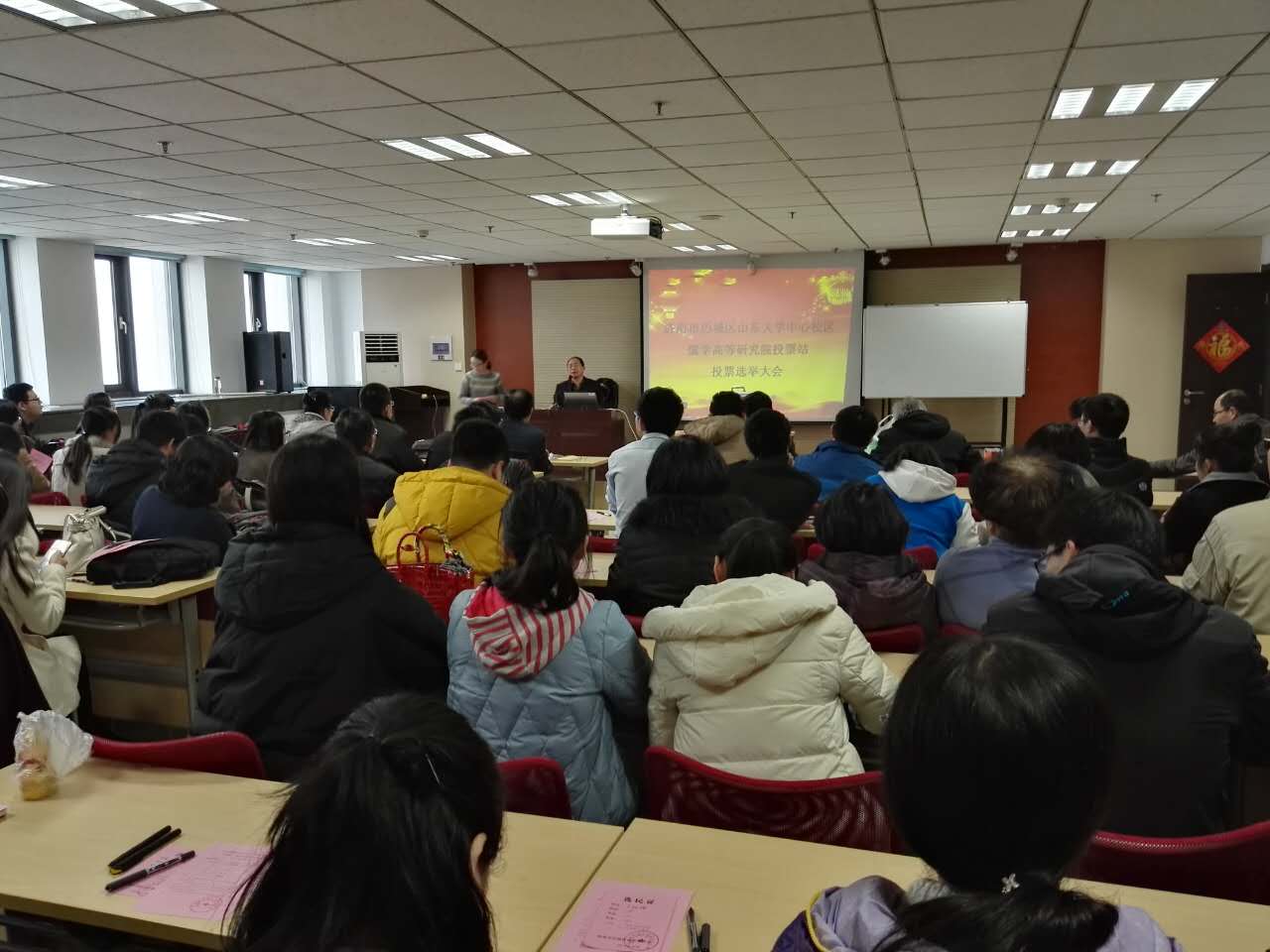 12月22日14:00,济南市历城区山大路街道山东大学中心校区选区儒学高等研究院投票站投票选举大会在知新楼A2116顺利举行。儒学院常务副院长王学典教授、副院长杜泽逊教授、学院在职及离退休教师、博士生、硕士生和尼山学堂本科生共计三百余人参加选举大会。会议由儒学院党委书记巴金文主持。