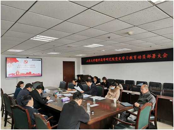 会议传达了习近平总书记在党史学习教育动员大会上的重要讲话精神以及教育部党组、山东大学党史学习教育动员部署大会的会议精神。会议强调,2021年是中国共产党成立100周年,开展党史学习教育,把党的成功经验传承好、发扬好,是牢记初心使命、推进中华民族伟大复兴历史伟业的必然要求,是坚定信仰信念、在新时代坚持和发展中国特色社会主义的必然要求,是推进党的自我革命、永葆党的生机活力的必然要求。时值山东大学建校120周年,山东大学紧密结合学校改革发展实际,对学校开展党史学习教育进行了动员部署,并要求全校各单位加强组织领导,建立健全责任体系和落实机制,把党史学习教育纳入组织生活,创新线上党史学习教育平台载体,建好全方位、全时段、立体化理论学习宣传网。