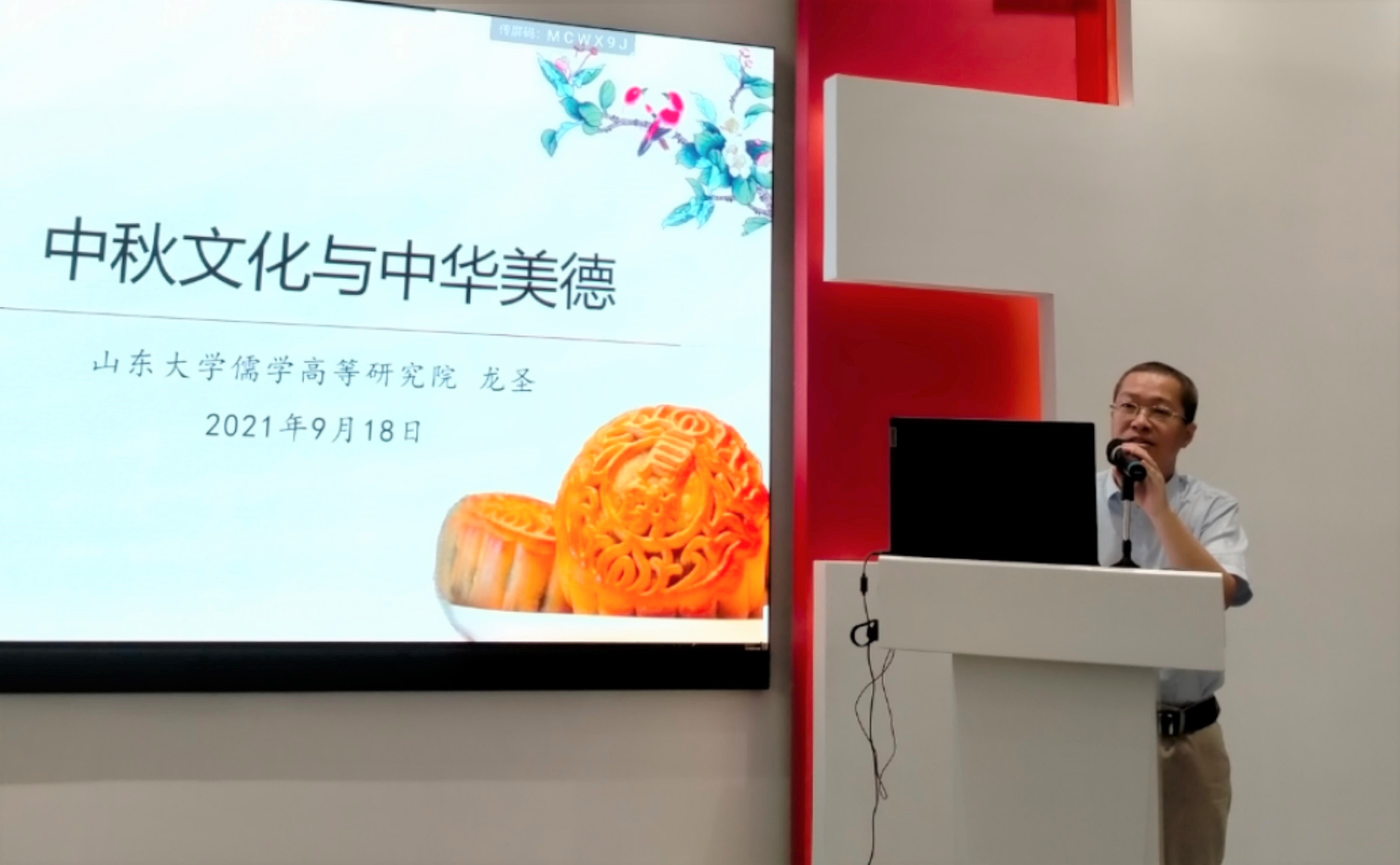 又是一年月最圆,秋高气爽丹桂香。在喜迎中秋、共庆佳节的前夕,为大力弘扬中华民族优秀传统文化,推进中华优秀传统文化创造性转化创新性发展,加强中华传统美德教育,发挥节日礼俗的社会教化功能,山东大学儒学高等研究院暨中华美德教育学院、山东省儒学发展促进会联合中共章丘区委宣传部,于2021年9月18日共同在章丘文博中心举办“我们的节日•中秋”中华优秀传统文化专题讲座,进行了一场别开生面的中华优秀传统文化传承创新活动。