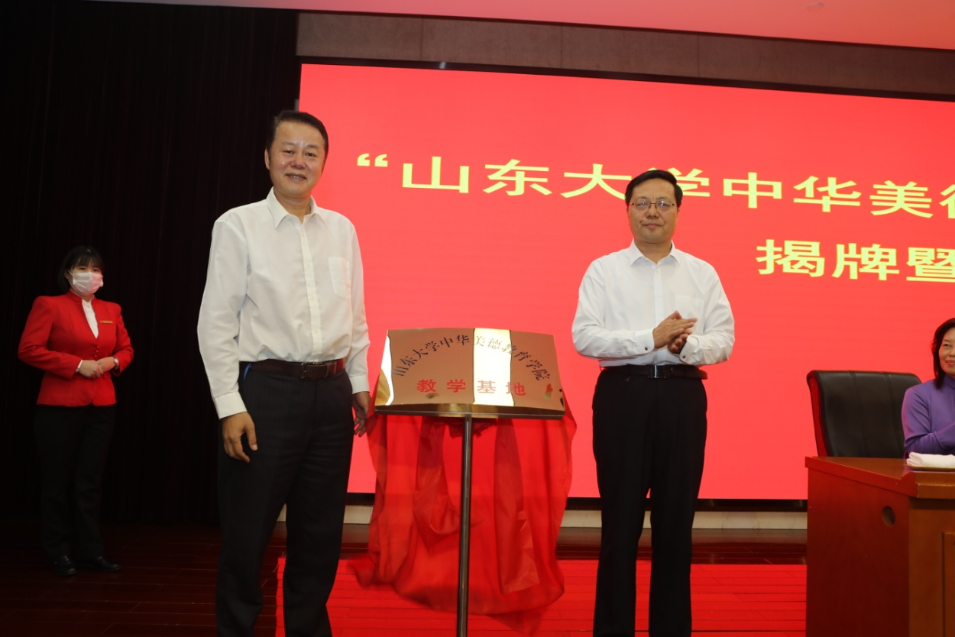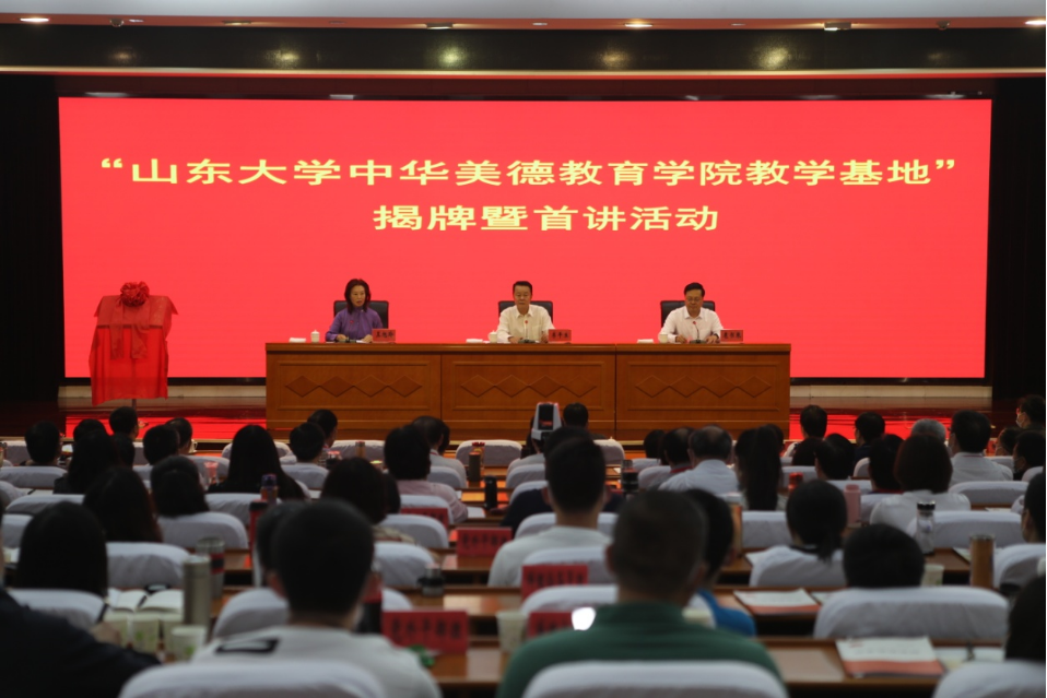 2021年9月29日下午,中华美德教育学院与中共济南市委党校(济南行政学院)举办了“山东大学中华美德教育学院教学基地”揭牌仪式暨首场讲座活动。山东大学儒学高等研究院党委书记兼中华美德教育学院党委书记李平生、儒学高等研究院副院长徐庆文,济南市委党校副校长扈书乘、教育长李立祥志、教务部主任杨洪涛等,以及济南市委党校在校主体班次全体学员200余人参加了此次活动。济南市委党校二级巡视员王旭玲主持揭牌仪式暨首场讲座。
