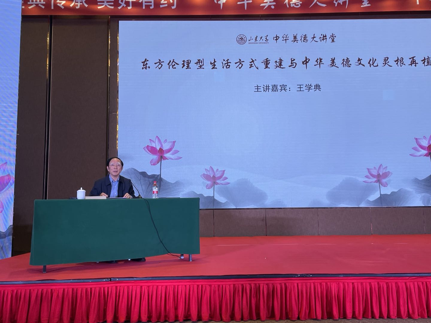 王学典作了题为《东方伦理型生活方式重建与中华美德文化灵根再植》的专题讲座。他指出,将中华美德与社会主义核心价值观相结合,必须重建东方伦理型生活方式,而打造东方伦理型生活方式是中国道路的题中应有之义。坚持中国特色社会主义制度,坚持中国共产党的领导,是中国道路的本质特征。中国是有五千年文明史的国家,有着一套独特的国家治理体系和治理传统,走着一条独特的“亚细亚道路”。驾驭这个超大型多民族长历史的国家,必须依赖一种有组织的力量。重建掌控中国社会的核心力量,是20世纪中国的重大任务。这种重建在共产党手里才得以完成,这就是党的领导的作用,这就是党的十九届四中全会把党的领导作为国家一个根本制度确立下来的非常重要的原因。大一统的观念是儒家主要的观念之一,维护大一统局面是儒家之所以成为儒家本质所在,儒家是一个有着强烈的使命担当的思想流派。中国道路既是马克思主义也是儒家文化参与塑造的,既是现代的,也是与传统对接的,在这个背景之下,无法全盘引入西方的生活方式,只能打造一个与这条道路相适应的新型生活方式,这就是东方伦理型生活方式的由来。