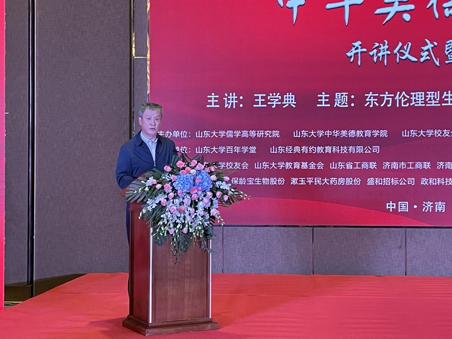 2021年10月7日上午,由山东大学儒学高等研究院、中华美德教育学院、山东大学校友企业家俱乐部、山东大学济南校友会联合主办的山东大学“中华美德大讲堂”开讲仪式暨首期讲座在济南银丰华美达酒店举行。山东大学常务副校长王琪珑出席并讲话,山东大学儒学高等研究院执行院长兼《文史哲》主编、中华美德教育学院院长王学典作首期讲座,儒学高等研究院党委书记兼中华美德教育学院党委书记李平生在开讲仪式上致辞,山东大学继续教育学院院长兼中华美德教育学院执行院长陈志军出席活动。山东大学合作发展部部长兼山东大学教育基金会秘书长王飞主持开讲仪式。来自山东省相关部门的领导干部、山东省内企业家、山东大学百年学堂学员、天赋教育机构的青少年以及社会各界人士,约200人出席活动。