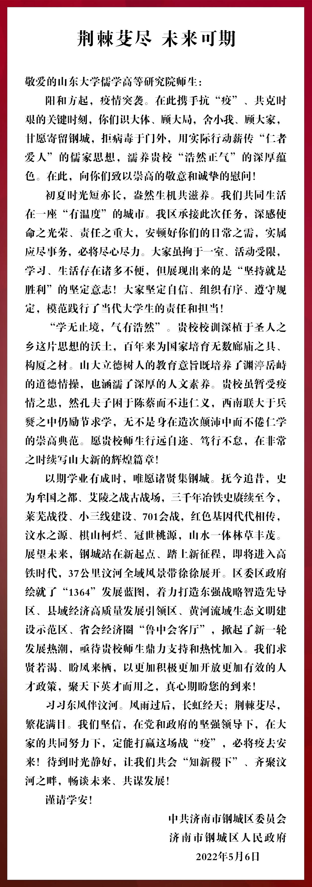 济南钢城区致山东大学儒学高等研究院师生的一封信