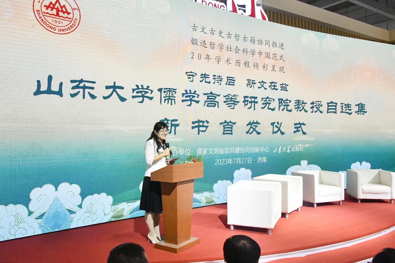 发布会上,陈斌社长在致辞中表示,在山东大学出版社成立40周年之际迎来山东大学儒高院自选集的出版,是对传承山大学脉与山大精神的又一见证。出版社自建社以来,始终秉持“服务教研、守正创新、繁荣文化、传承文明”的出版理念,坚定不移地走高质量发展之路,与时俱进,不断推精品、出力作,截至目前,累计出版各类图书7000余种,获各类出版奖励600余项。在出版社新征程上,亦将不忘初心、精耕细作,肩负起传承创新中华优秀传统文化、促进文化大繁荣的社会责任与时代使命。