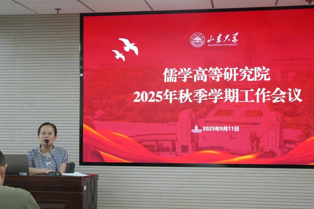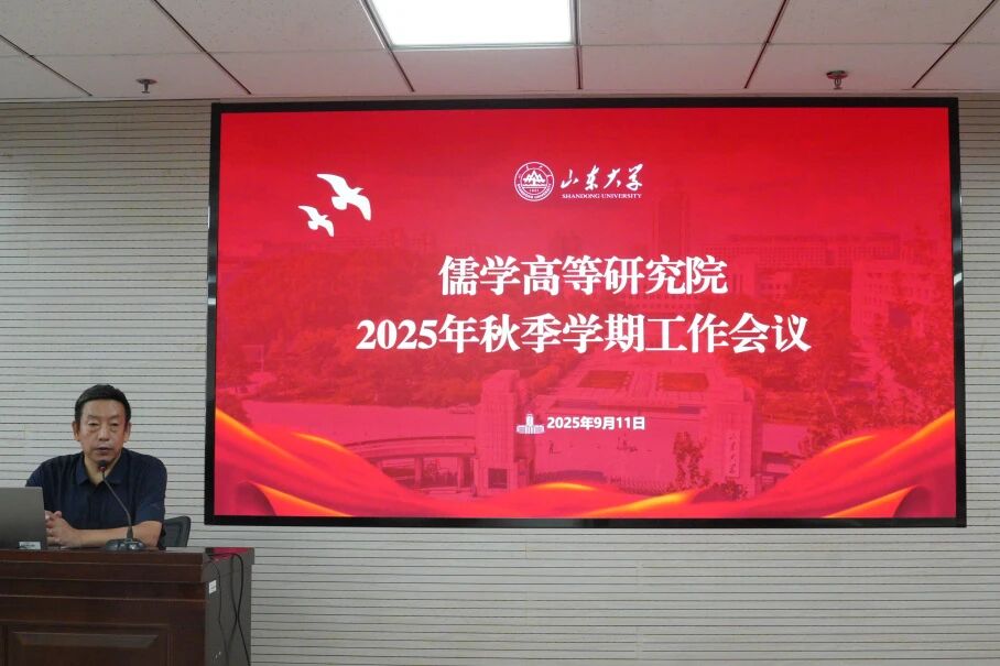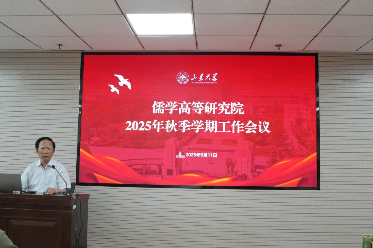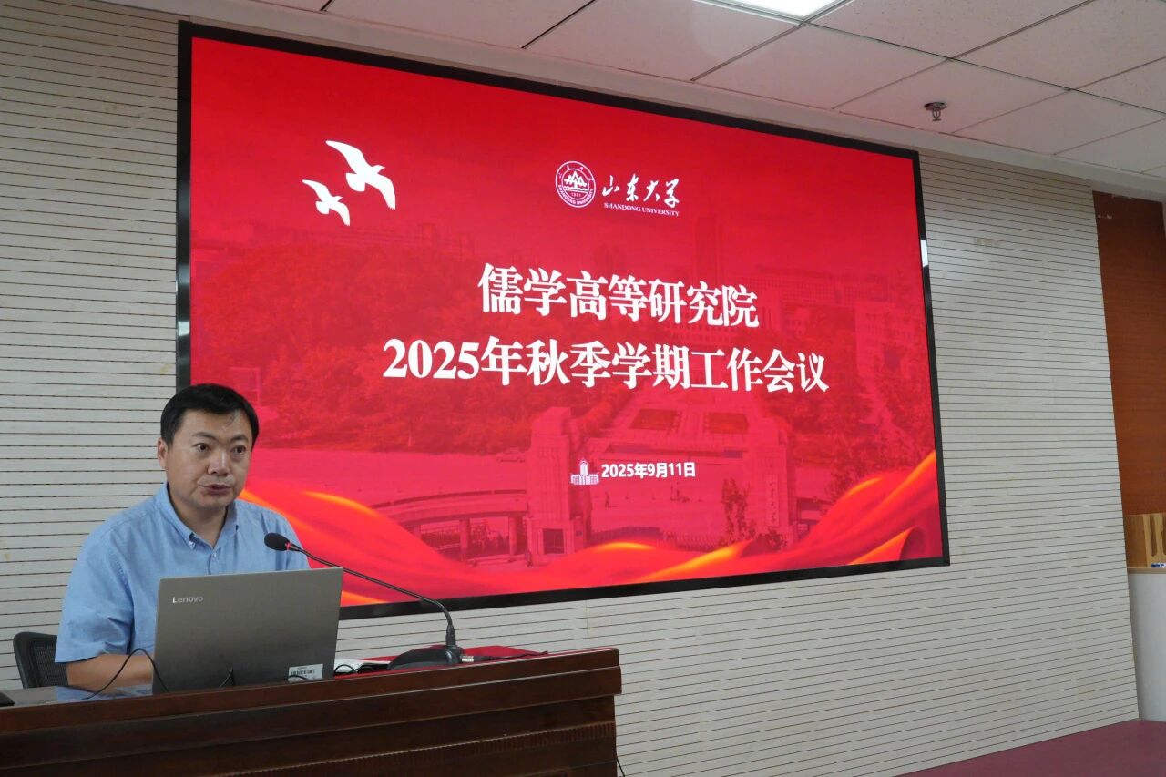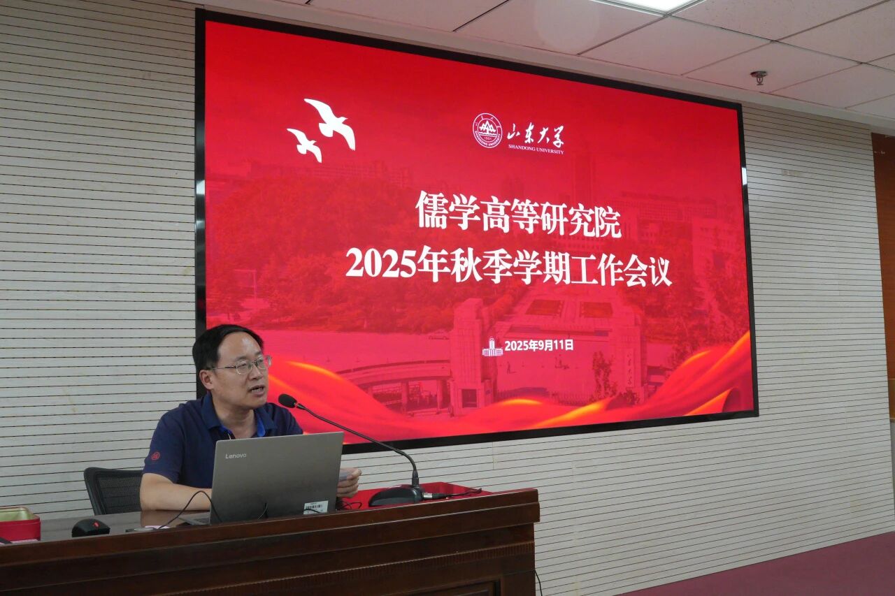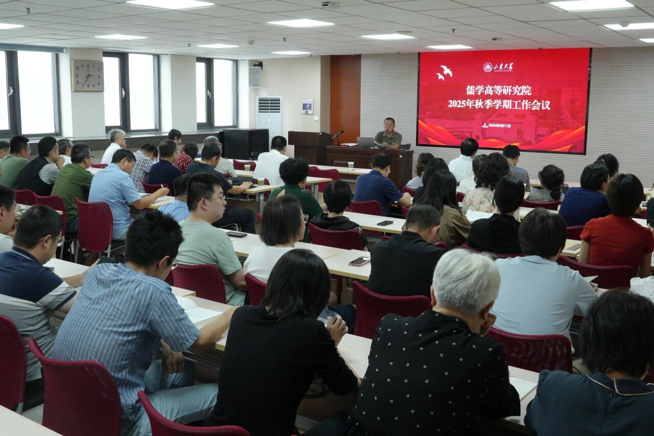 2025年9月11日,儒学高等研究院在知新楼A2116召开2025年秋季学期工作会议,院长王学典、学院领导班子和全体教职工参加会议。会议由儒学院党委书记、执行院长王加华主持。