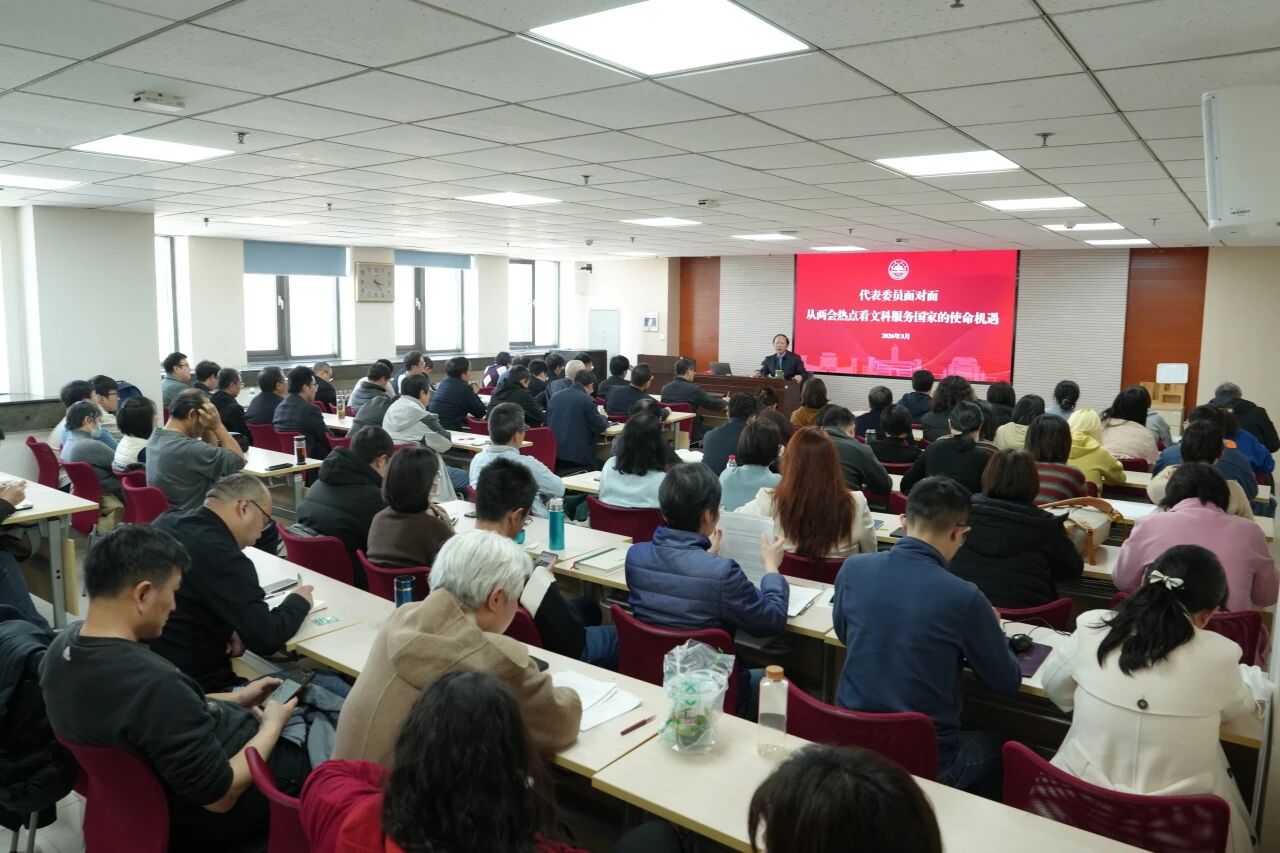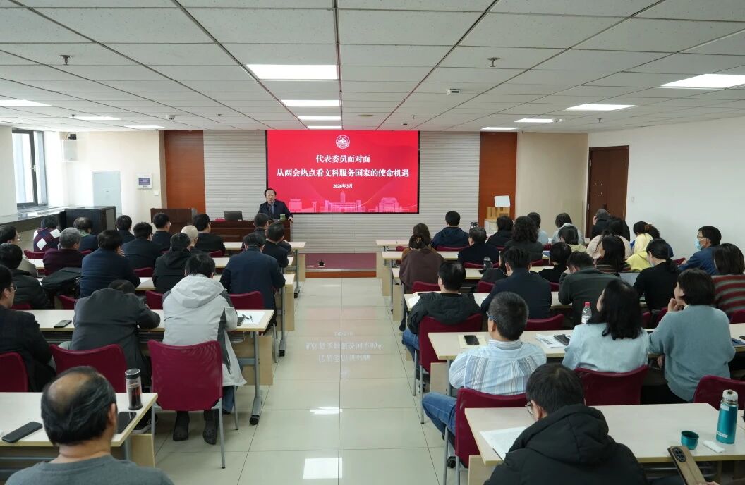 2026年3月12日,儒学高等研究院在知新楼A2116召开“全院师生思政大课暨代表委员面对面主题报告会”。刚刚履职归来的全国政协常委、山东大学儒学高等研究院院长王学典教授为全院师生作题为《从两会热点看文科服务国家的使命机遇》的专题报告,第一时间传达2026年全国两会精神。