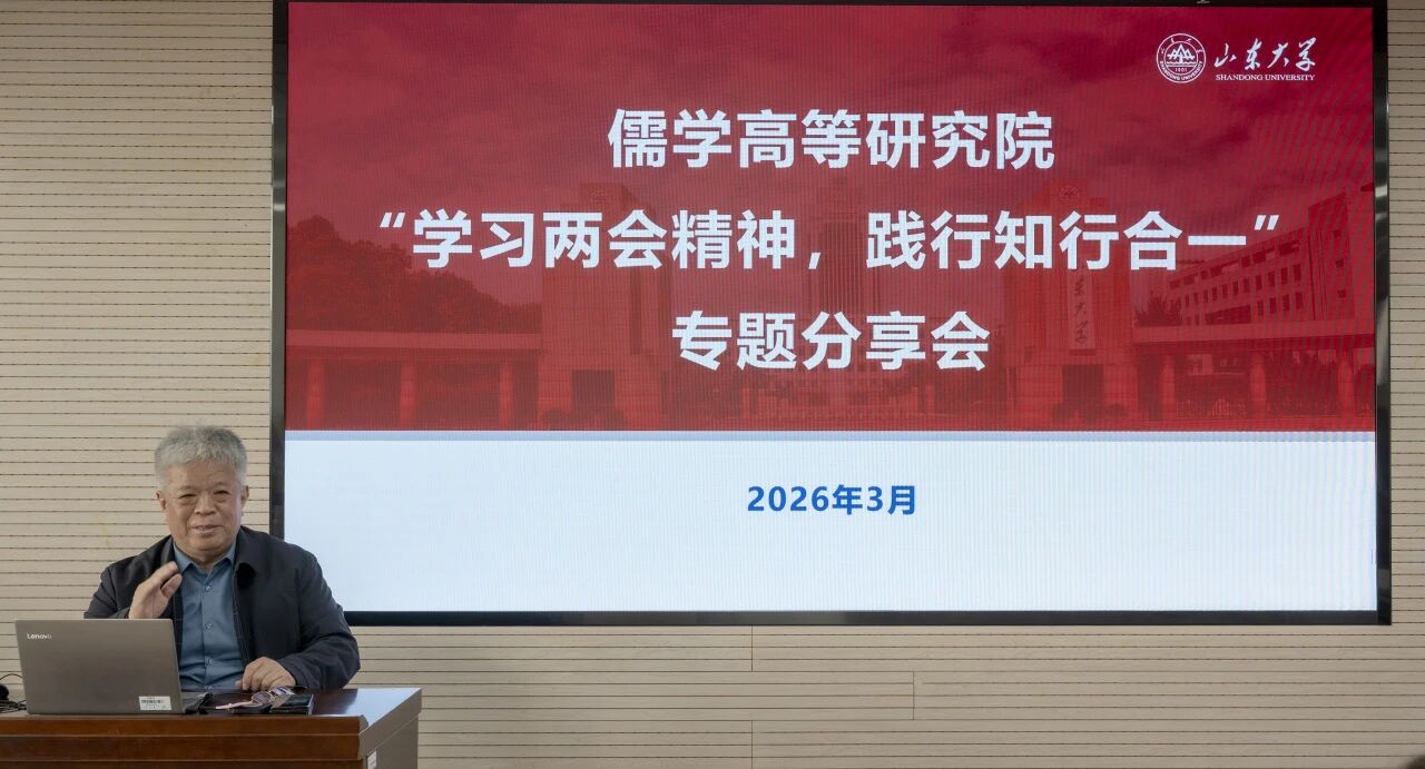 3月31日下午,山东大学“典籍故事名师说”第四季《孟子》趣读活动暨儒学高等研究院“学习两会精神,践行知行合一”专题分享会在知新楼A座2116教室顺利举行。本期活动邀请山东大学儒学高等研究院特聘教授、第十四届全国人大代表杨朝明教授作“怎样理解孟子‘述仲尼之意’”学术讲座。讲座由儒学院党委书记、执行院长王加华教授主持。