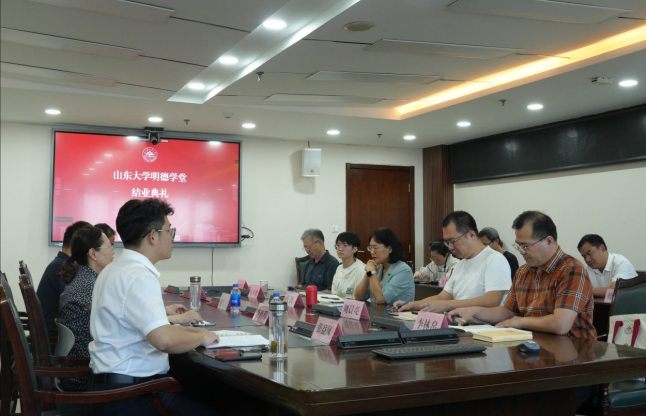 2025年8月31日下午,山东大学儒学高等研究院明德学堂结业典礼在知新楼A1916会议室举行。山东大学儒学高等研究院党委书记兼执行院长王加华、党委副书记李鹏程、副院长徐庆文出席开班仪式,另有来自各地区各行业的十余位学员现场参加了本次仪式。仪式由明德学堂班主任张益凤老师主持。